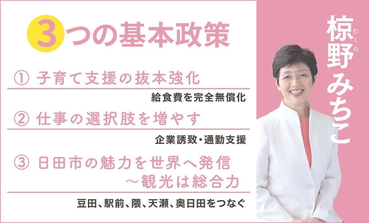 これからの日田市の発展のためには、福岡、熊本、全国につながり、アジア、世界とつながることが絶対に必要です。全国を、世界を知っている私ならそれができます。